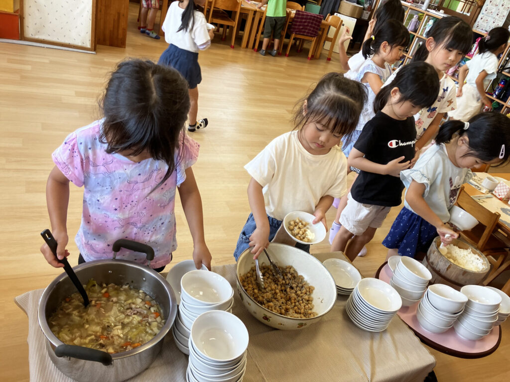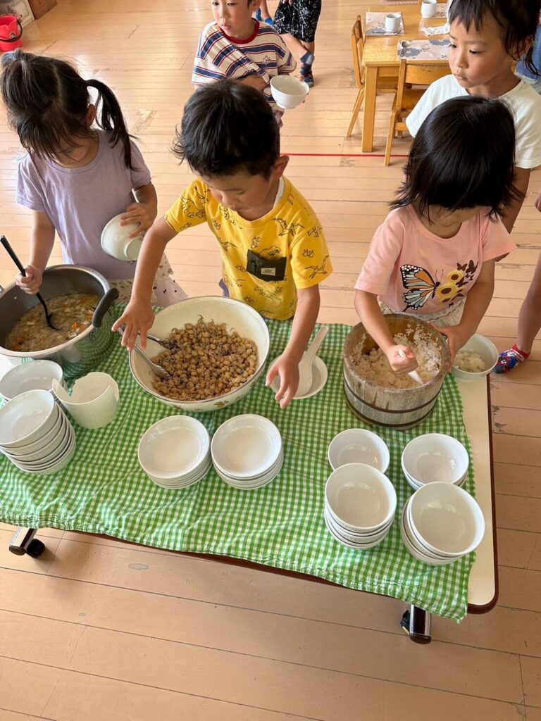 素材本来の味を大切にし、塩分や調味料は控えめに。お出汁もいりこから丁寧にとっています。子どもたちの味覚を育てる「薄味」を基本としながら、旬の食材を取り入れ、季節の移ろいを感じられる献立づくりを心がけています。
