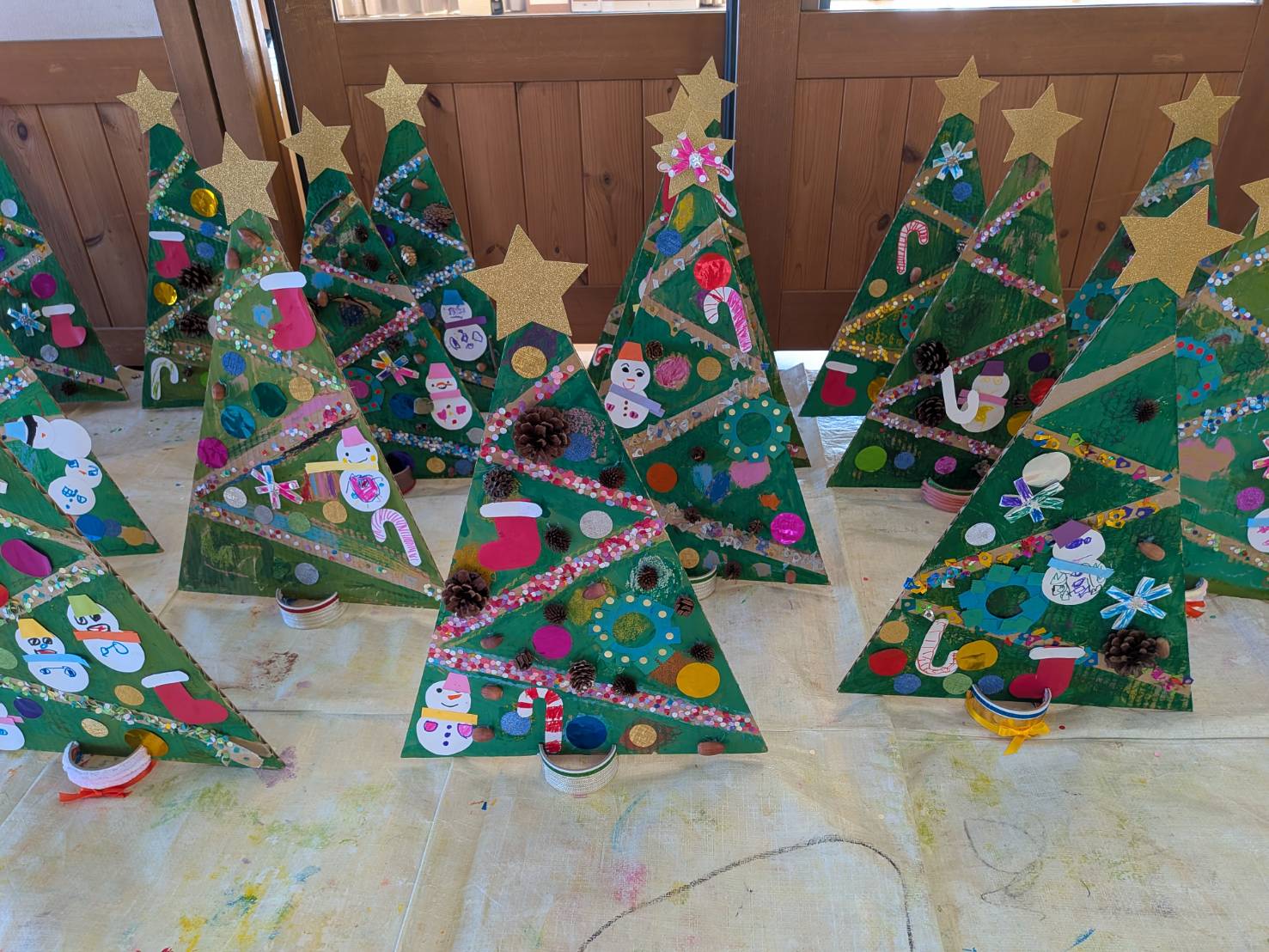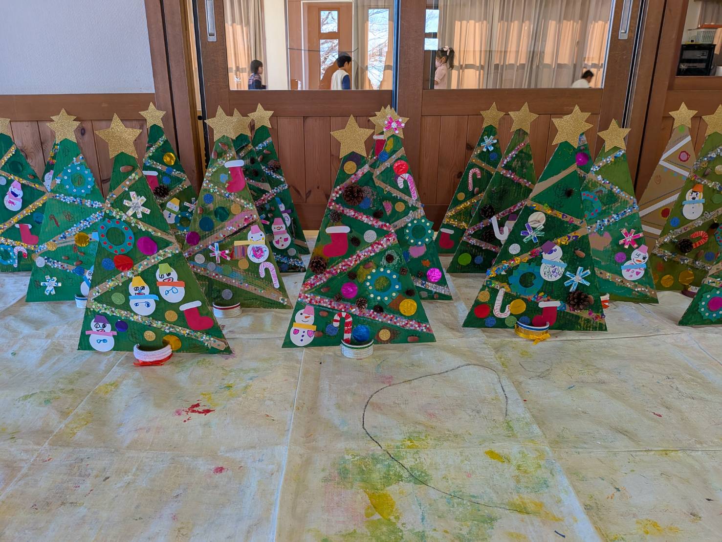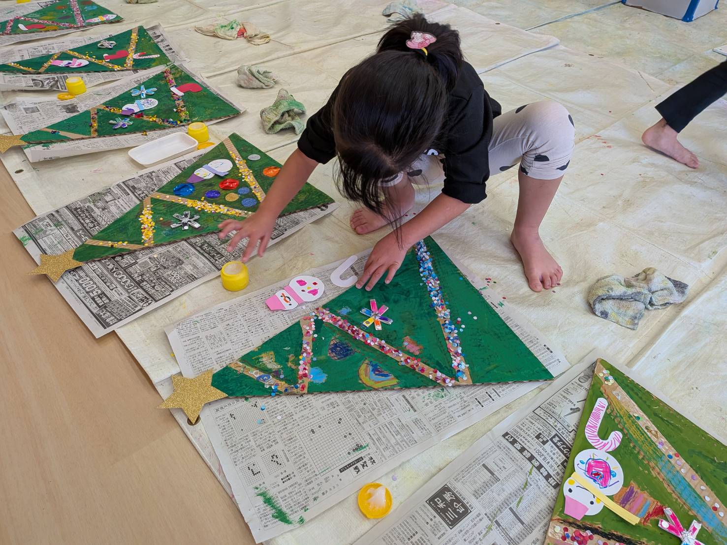 12月5日、造形指導でクリスマスツリーを作りました。手作りオーナメントに個性がきらりと光っています!