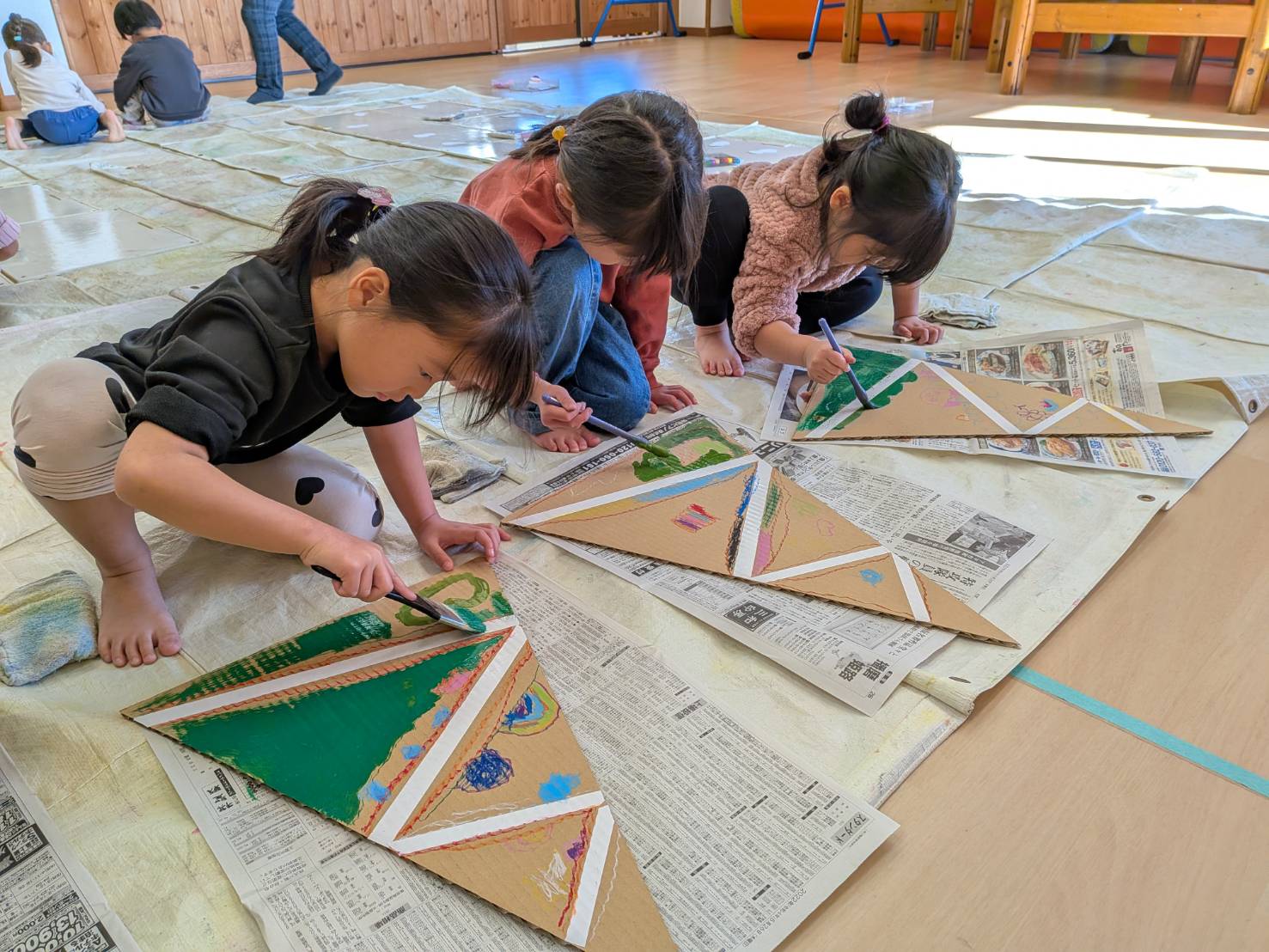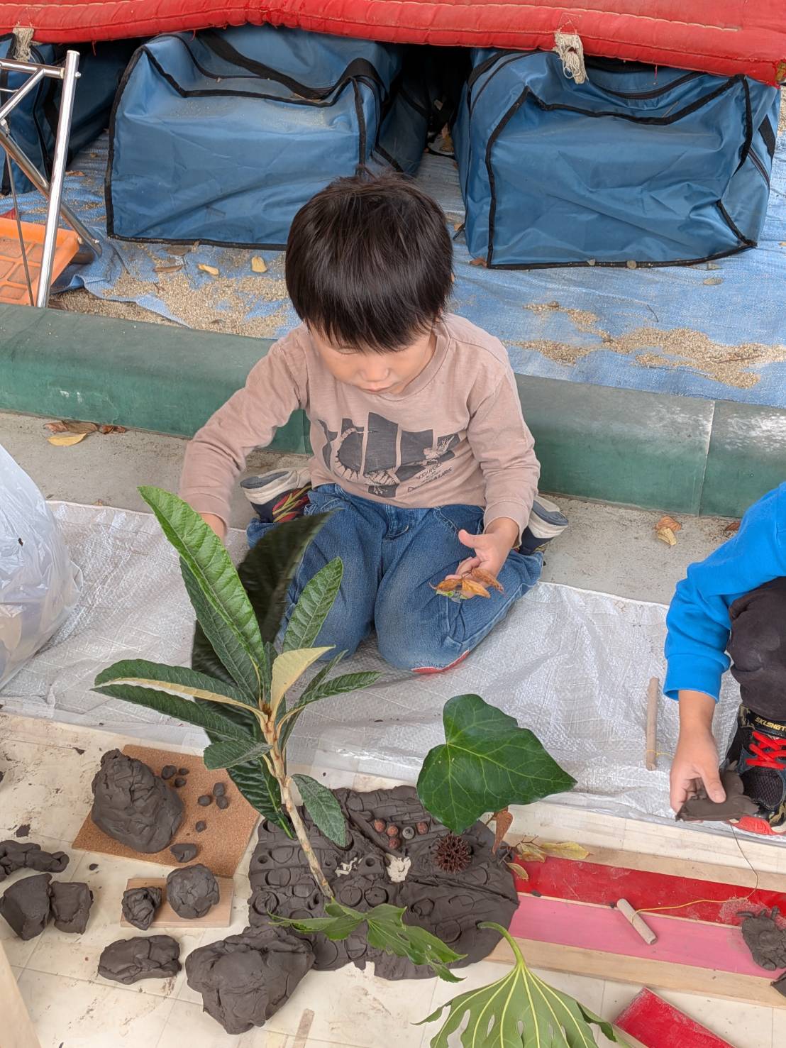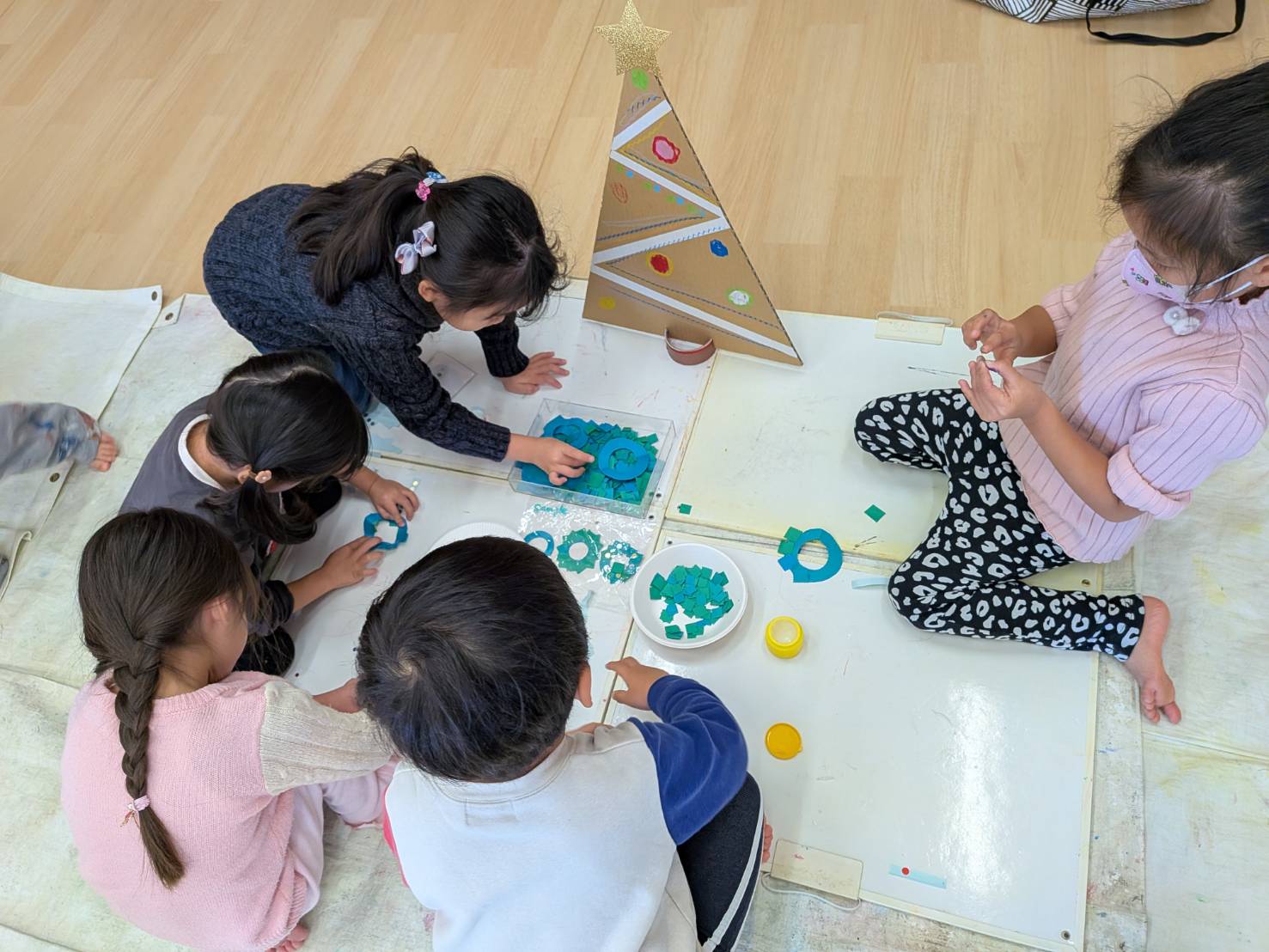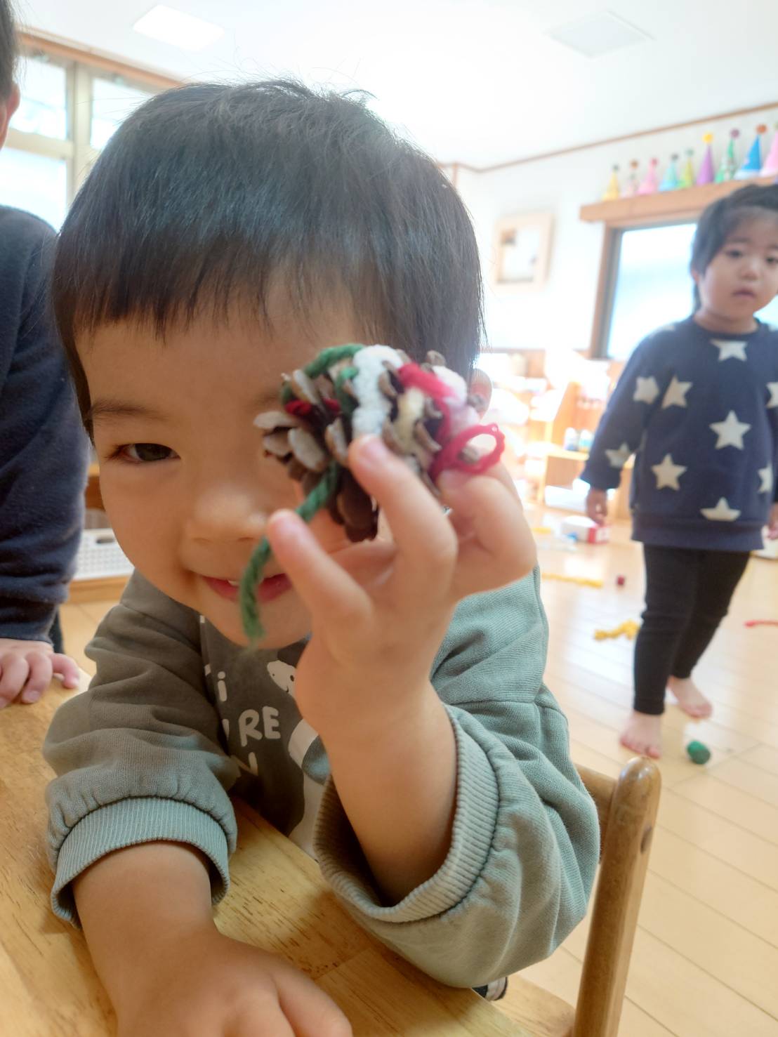 12月5日、造形指導でクリスマスツリーを作りました。手作りオーナメントに個性がきらりと光っています!