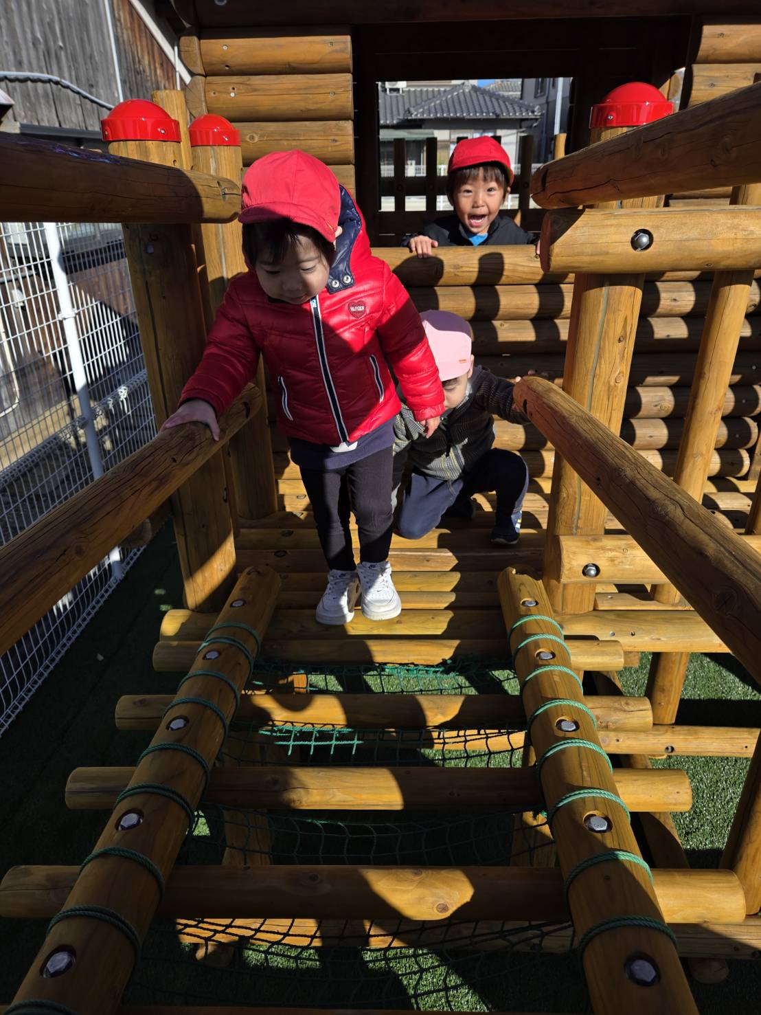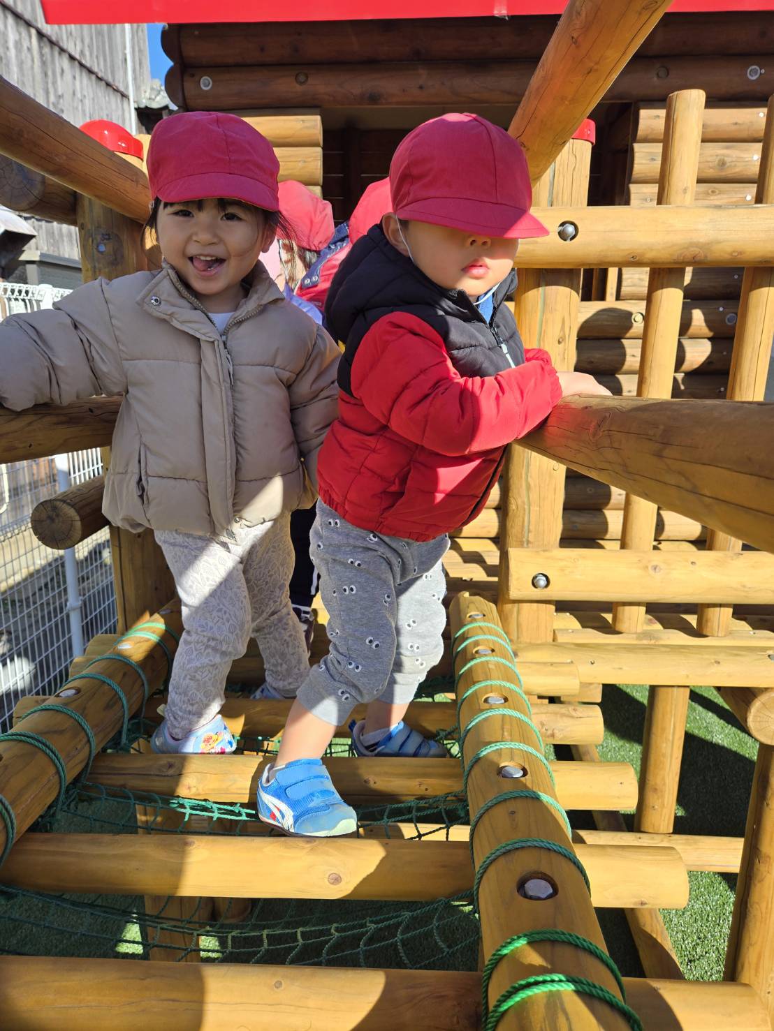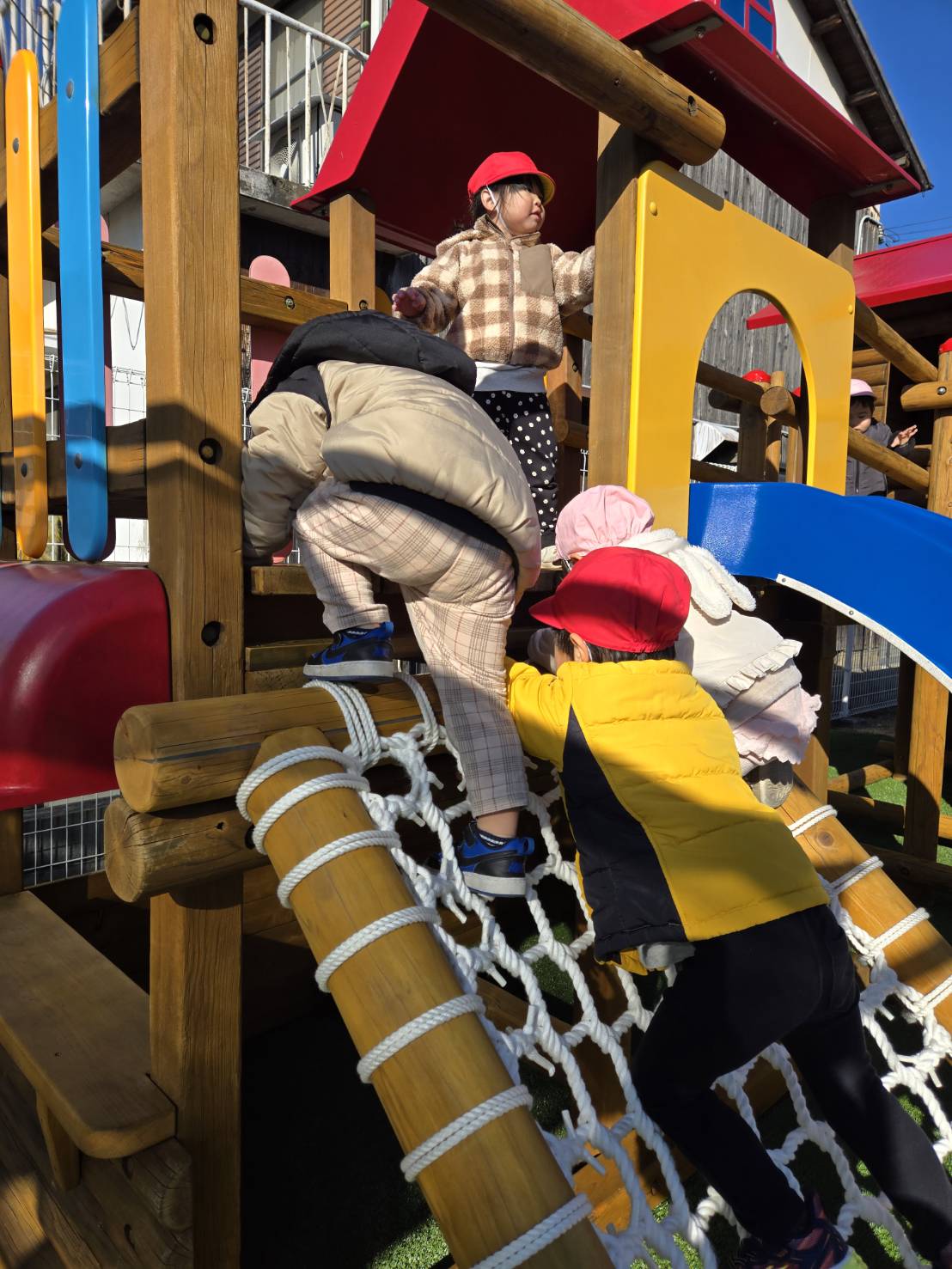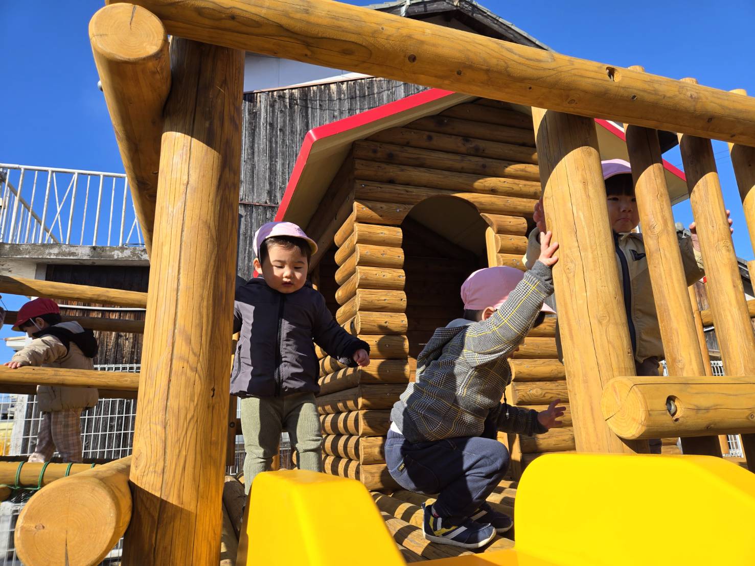 12月10日、れんげ広場の遊具が築山にお引越し。新しく生まれ変わった築山で遊んだよ!