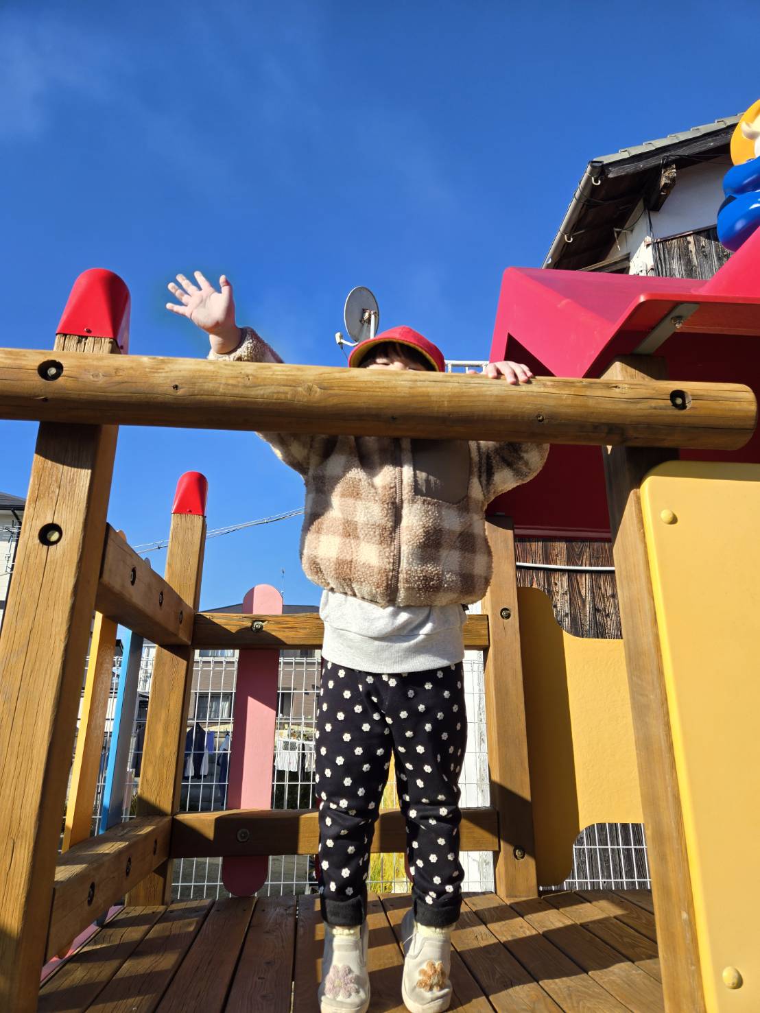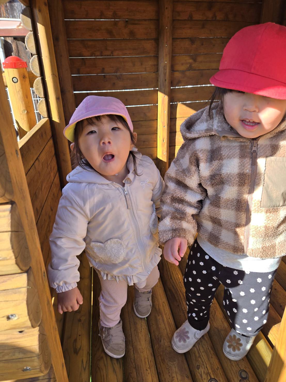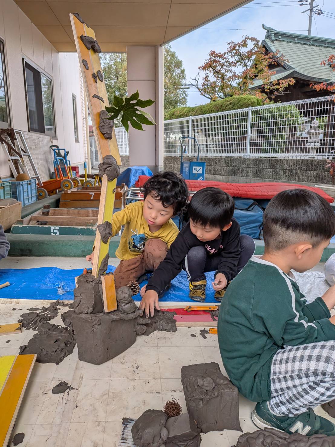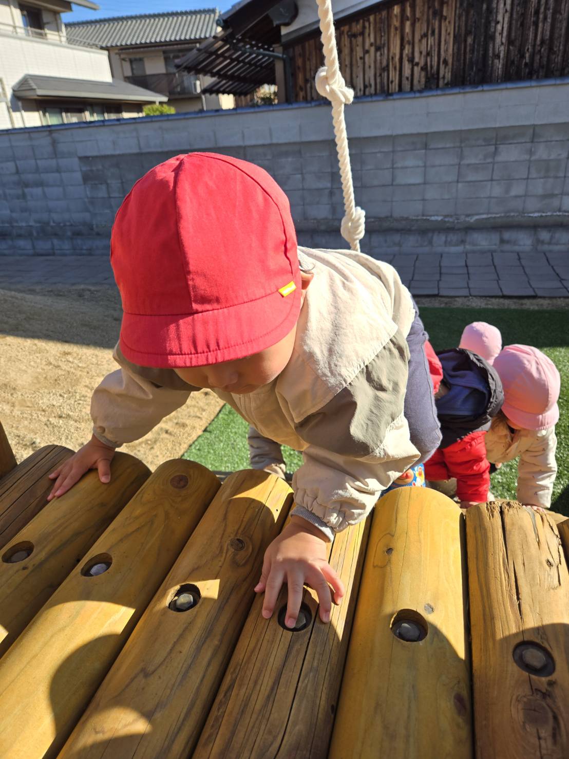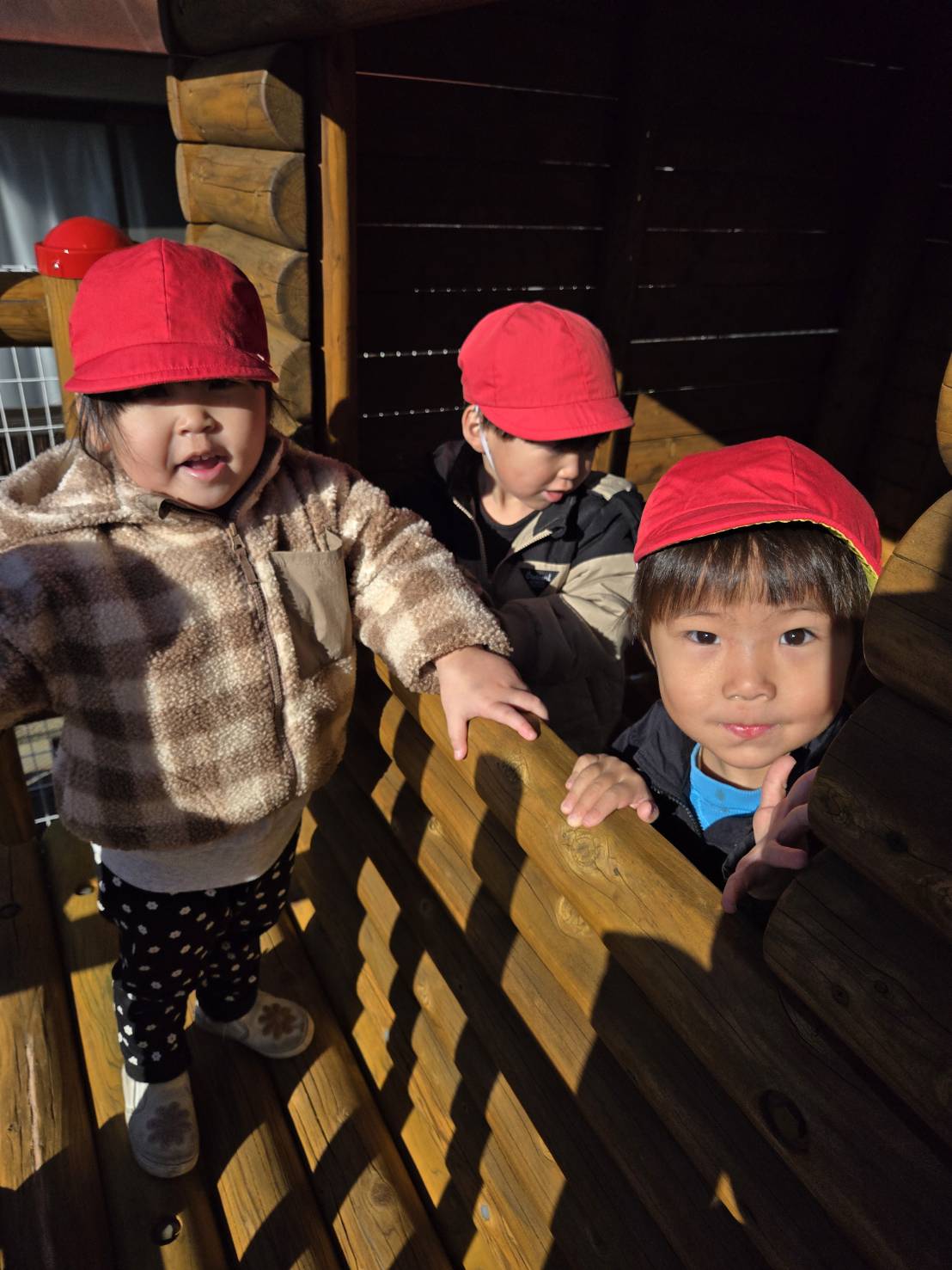 12月10日、れんげ広場の遊具が築山にお引越し。新しく生まれ変わった築山で遊んだよ!