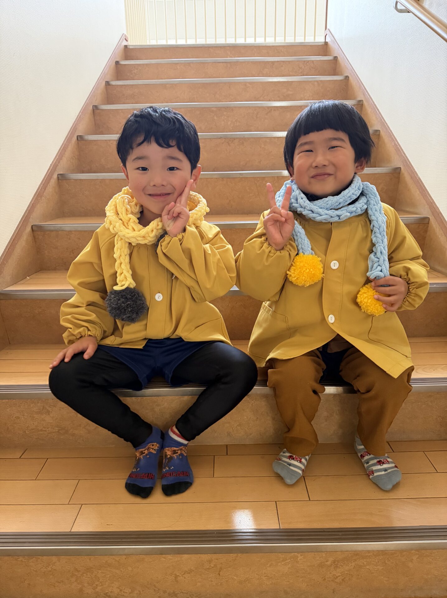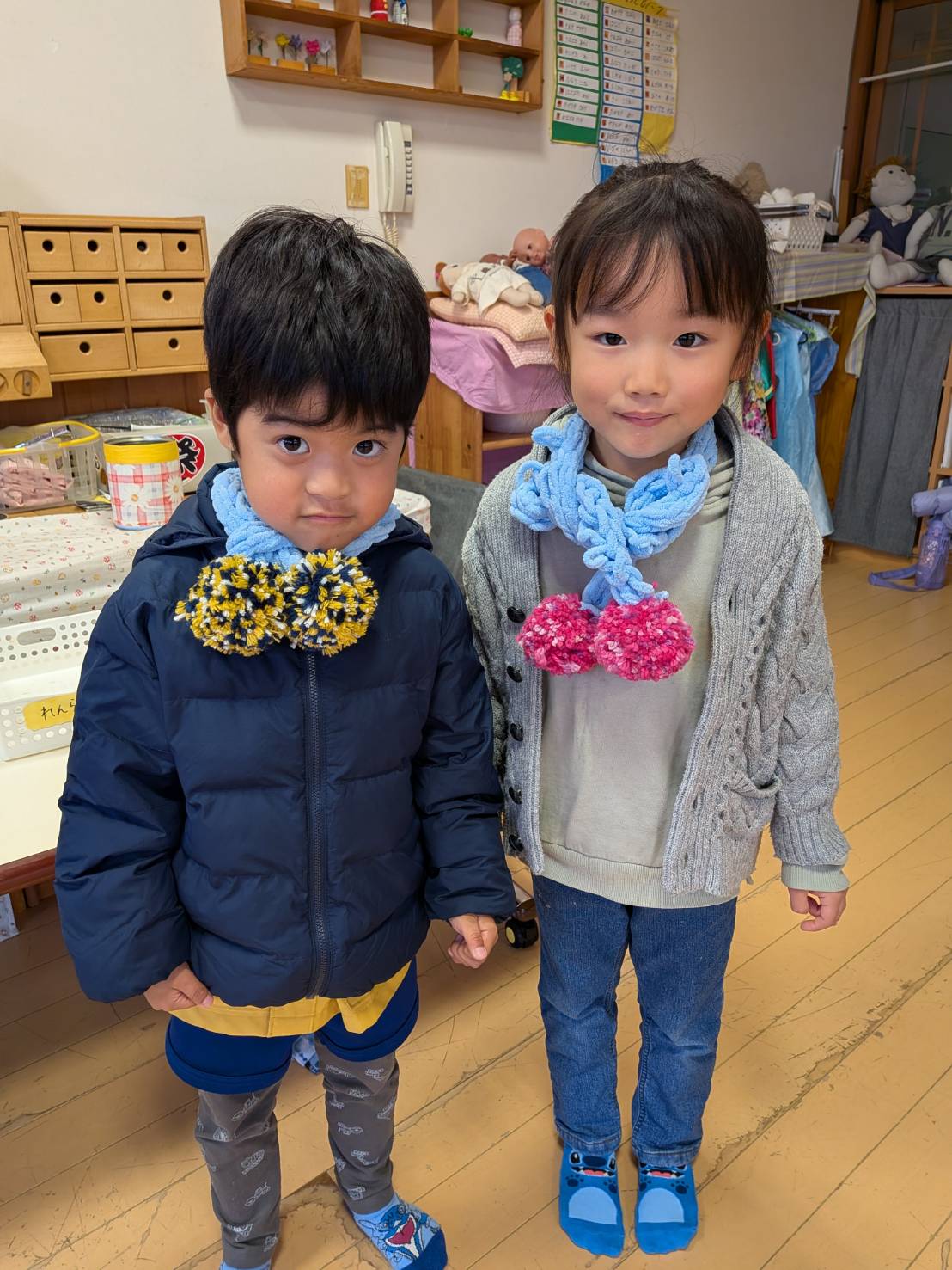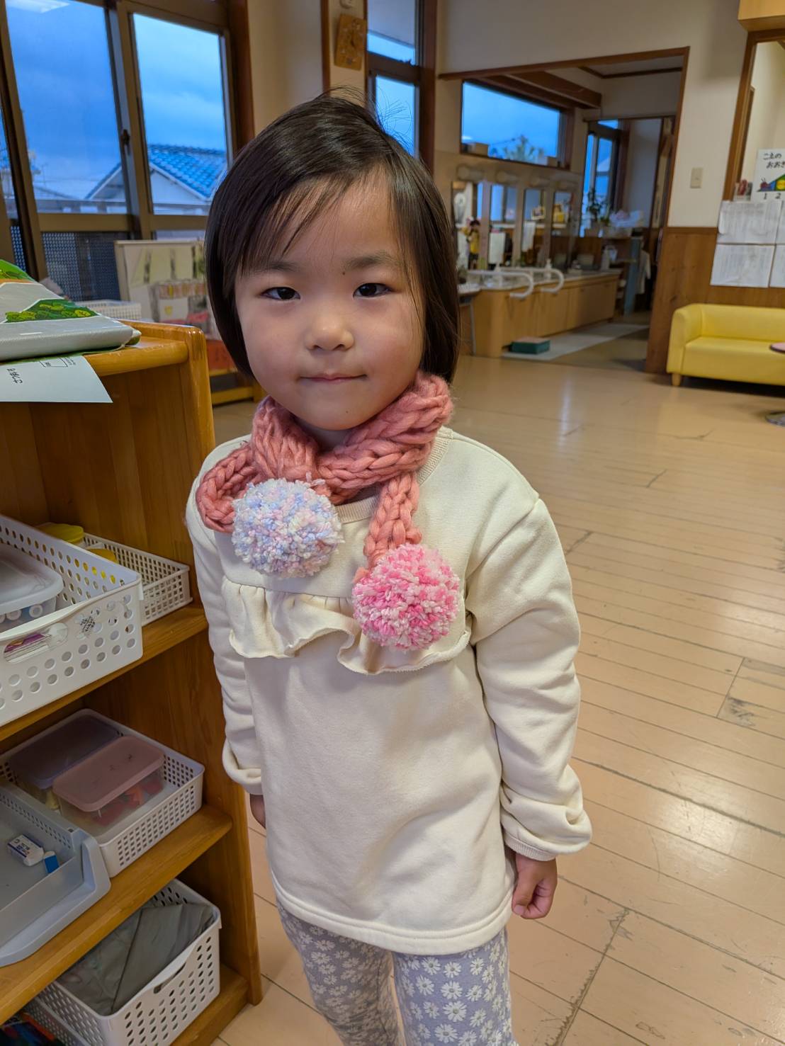 12月2日、マフラー完成!見ている人まで、あったかくなる素敵なマフラーと笑顔です。