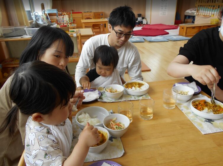 初日は、保護者の方にも実際の保育(昼食時もご一緒にどうぞ)を体験していただきます。