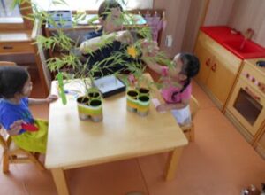 入園後、とまどうことなく園の生活に入っていけるよう、在園児と同じ生活リズムで育児の援助や遊びの支援を行います。