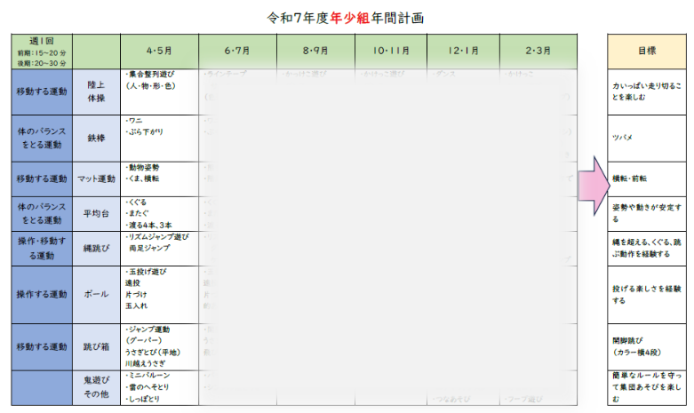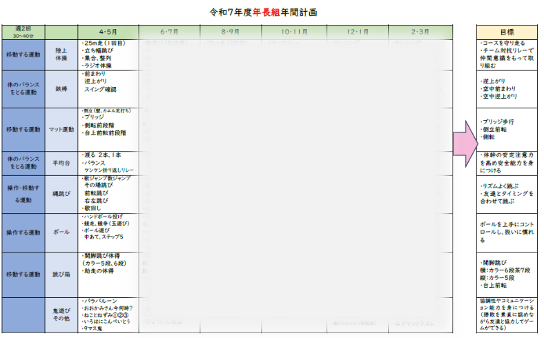 年齢に応じたねらい、および年間計画は、こちらをご覧ください。